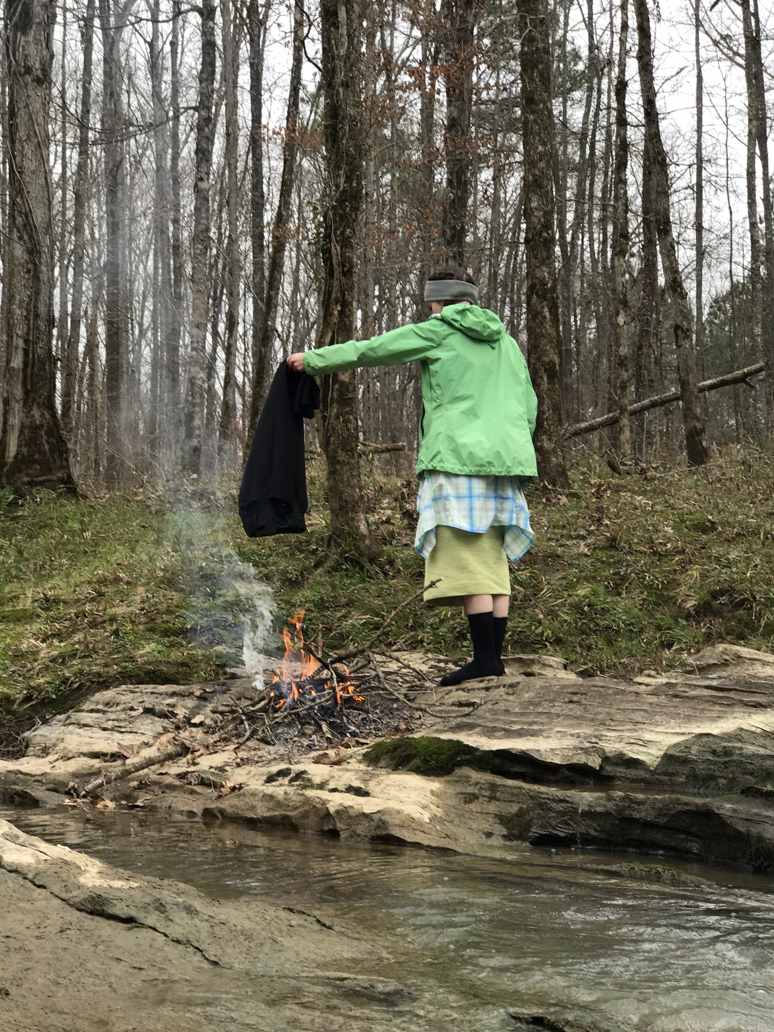 She tried to dry her pants out a little. We all loaned her a piece of our clothing and we managed to cover most of her. Bless her little heart. It wasn't ideal, but it was a good experience to see what to do in a situation like that.