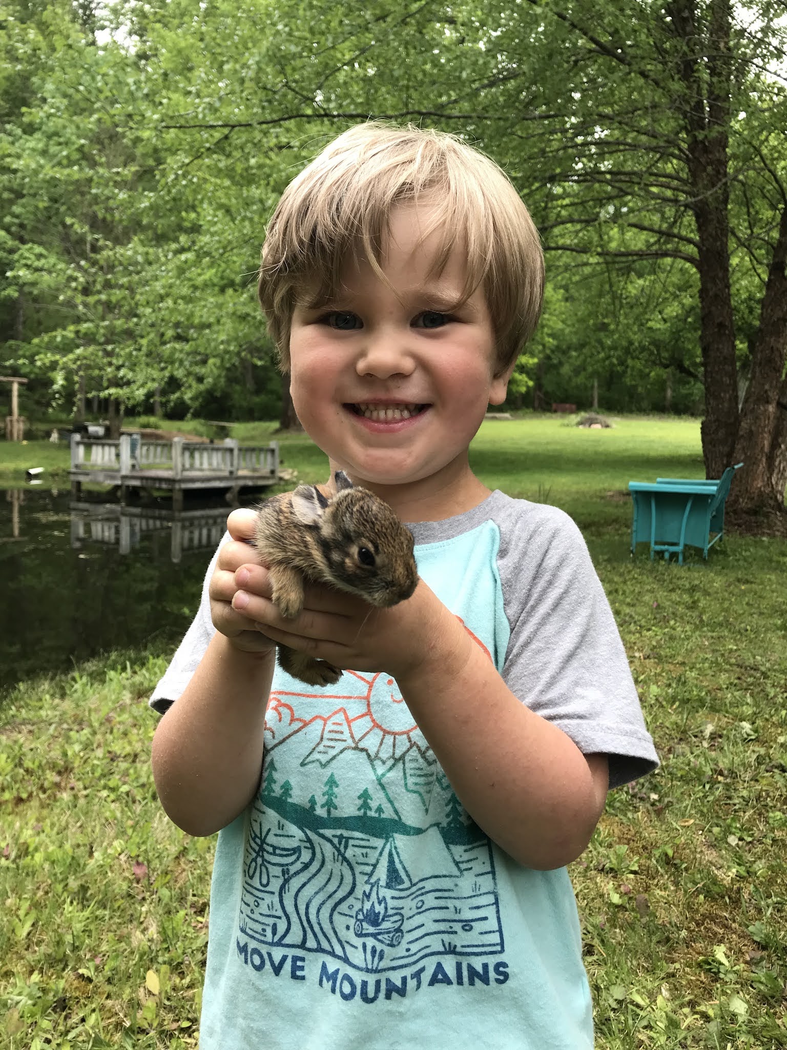 Our little bunny friend jumped right into EC's hands. It was the sweetest little thing. Too bad it only lasted for a day.